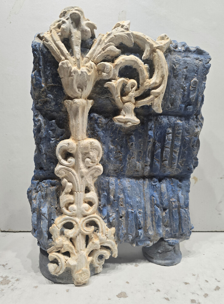 het beeld bestaat uit 4 onderdelen, is afgewerkt met een sinterengobe en electrisch gestookt. .